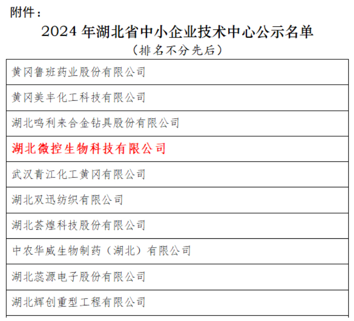 近日,根據(jù)湖北省經(jīng)濟(jì)和信息化廳發(fā)布的《關(guān)于2024年湖北省中小企業(yè)技術(shù)中心名單的公示》,湖北微控生物科技有限公司榜上有名。此次申報(bào)的湖北省中小企業(yè)技術(shù)中心,是湖北省為推動(dòng)中小企業(yè)專(zhuān)精特新發(fā)展而設(shè)立的重要?jiǎng)?chuàng)新平臺(tái)。公司憑借擁有自主知識(shí)產(chǎn)權(quán)的工藝技術(shù)優(yōu)勢(shì)及在行業(yè)內(nèi)領(lǐng)先水平的資深研發(fā)團(tuán)隊(duì)。順利通過(guò)嚴(yán)格的審核評(píng)估